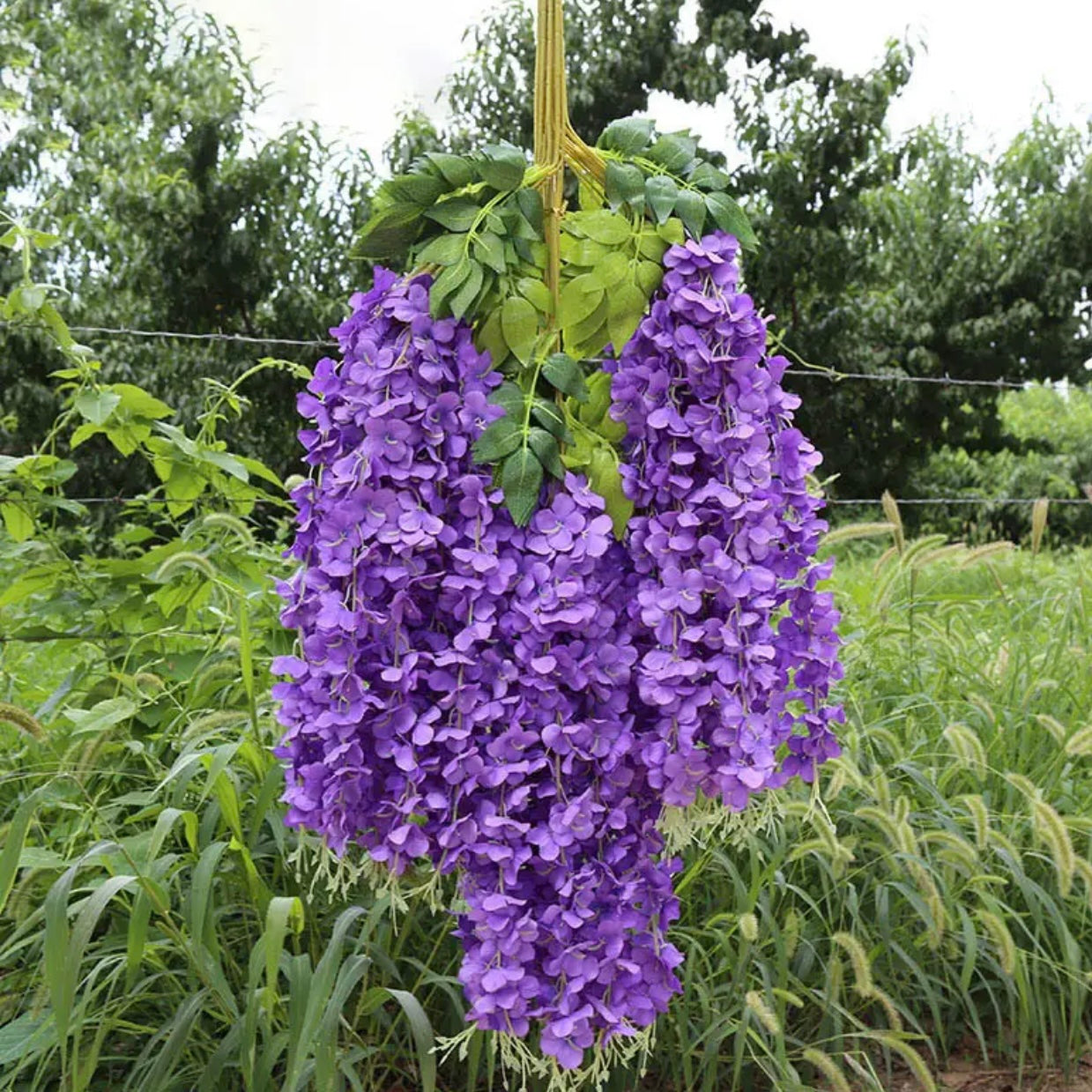 Size of each fake flower vine: About 3.6 Feet in length.per artificial wisteria with 3 branches,flower strings is 22inch.