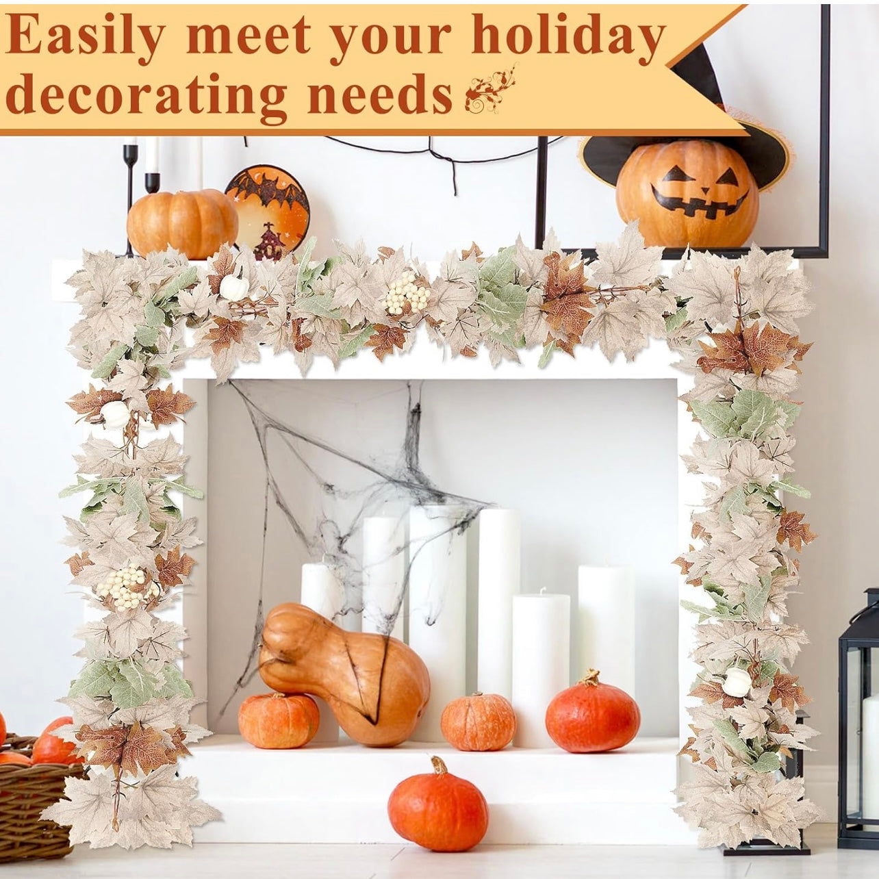 Artificial Maple Leaf Garland with Pumpkins