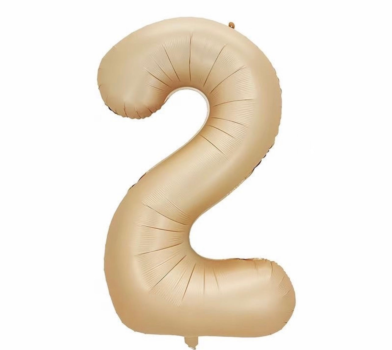 Matte foil balloon number 2 in caramel colour, can be inflated with air or helium.