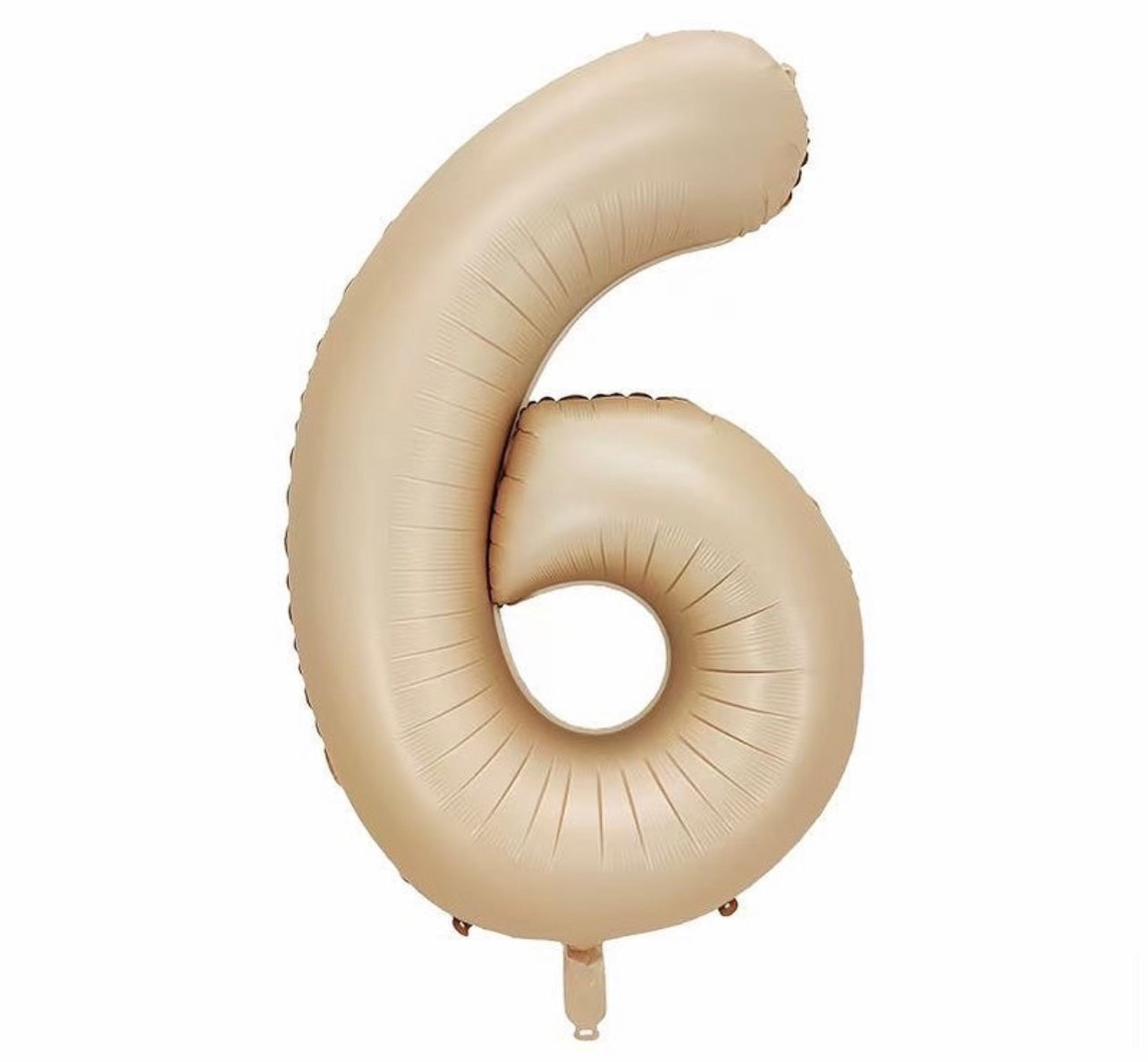 Matte foil balloon number 6 in caramel colour, can be inflated with air or helium.
