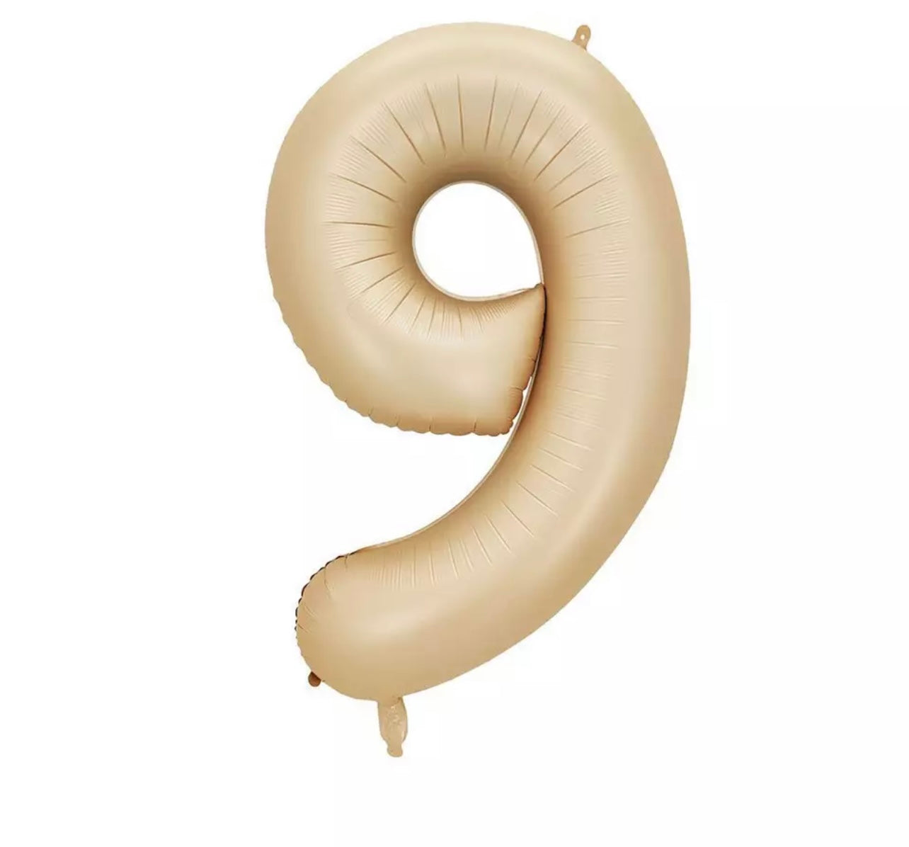 Matte foil balloon number 8 in caramel colour, can be inflated with air or helium.