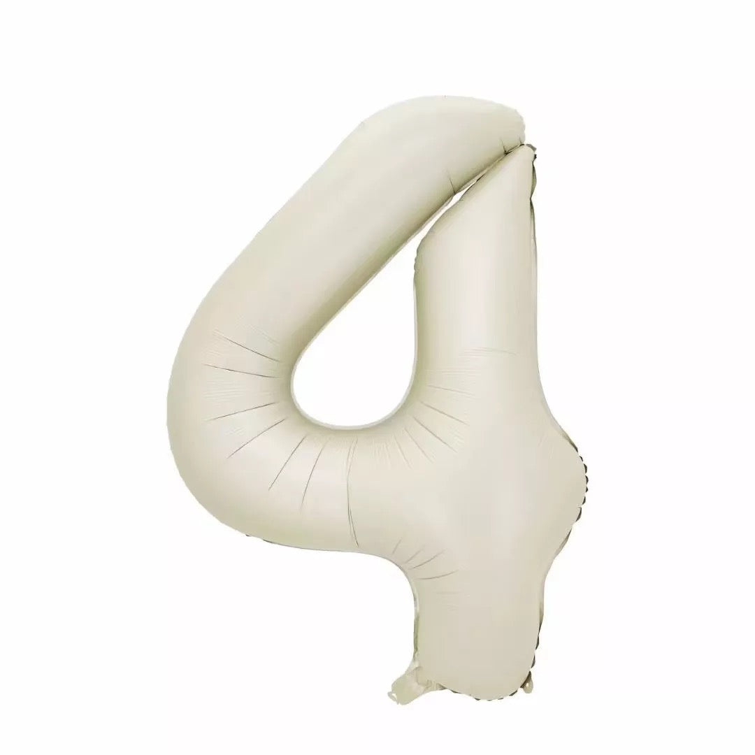 Matte foil balloon number 4 in champagne colour, can be inflated with air or helium.