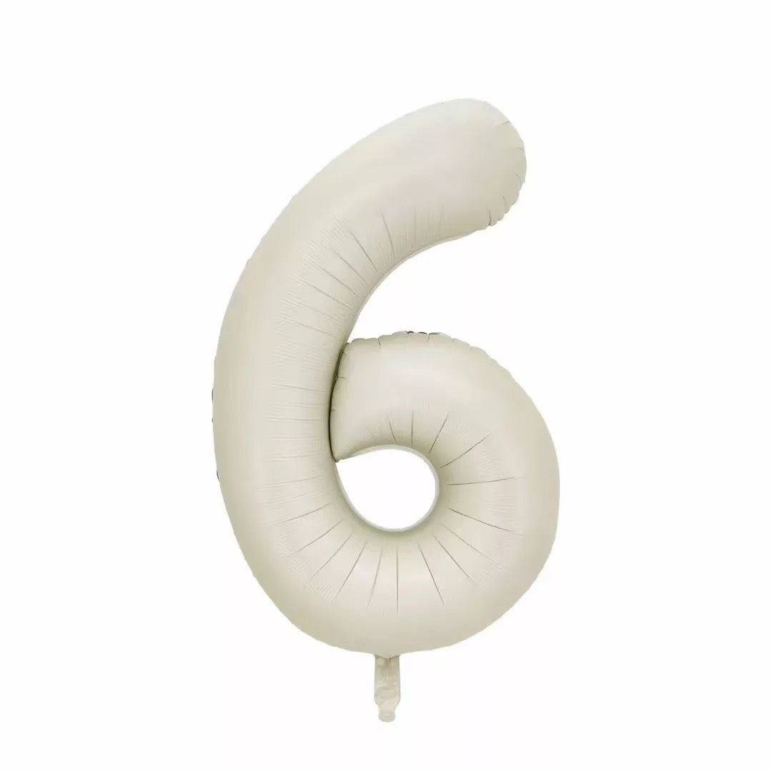 Matte foil balloon number 6 in champagne colour, can be inflated with air or helium.