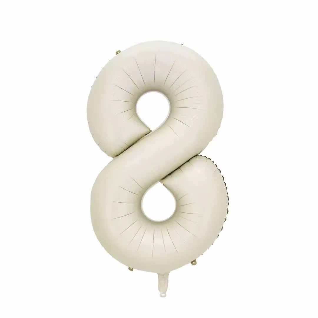 Matte foil balloon number 8 in champagne colour, can be inflated with air or helium.