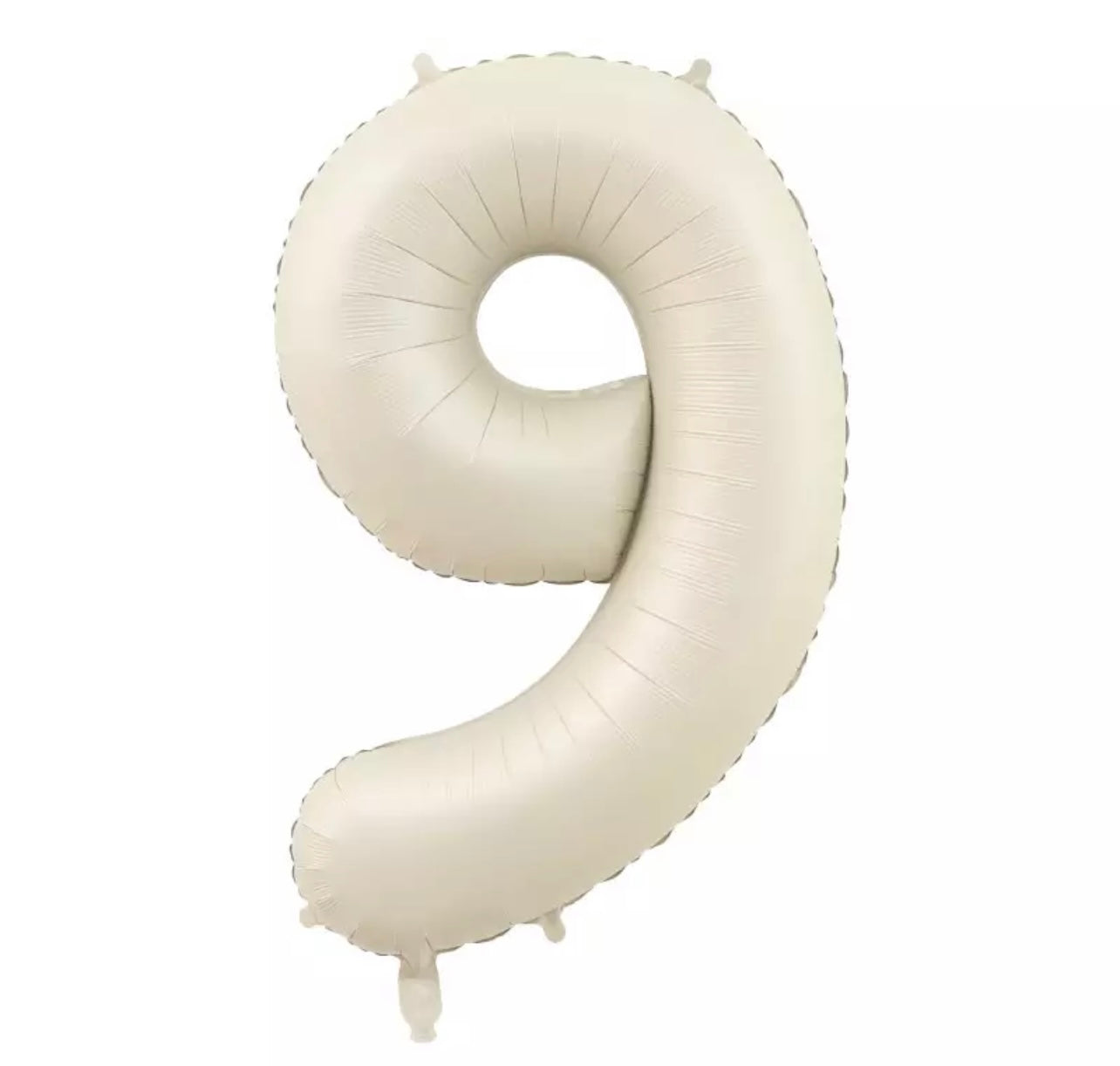 Matte foil balloon number 9 in champagne colour, can be inflated with air or helium.