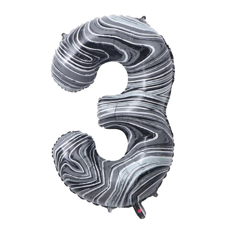 Foil balloon number 3 in marble colour, can be inflated with air or helium.