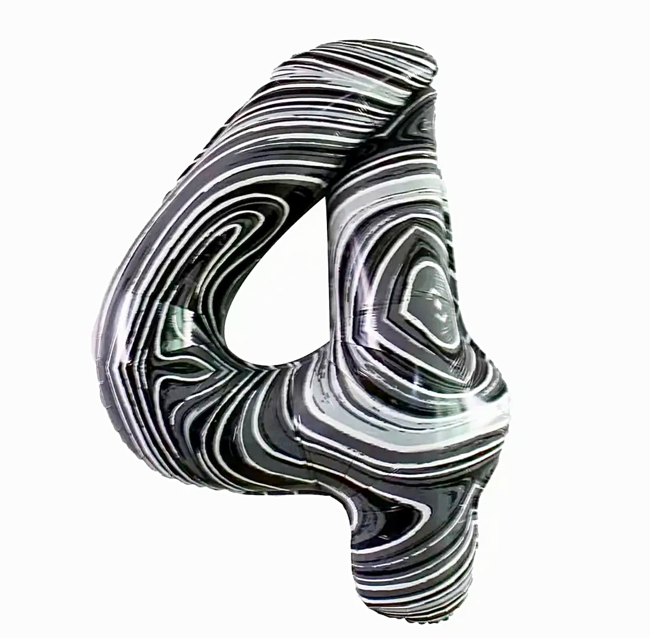 Foil balloon number 4 in marble colour, can be inflated with air or helium.
