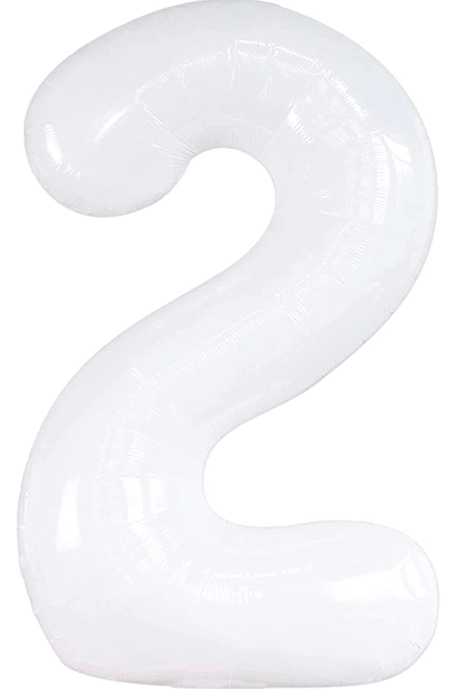 Metallic foil balloon number 2 in white, can be inflated with air or helium.