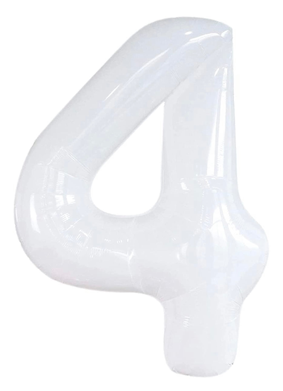Metallic foil balloon number 4 in white, can be inflated with air or helium.