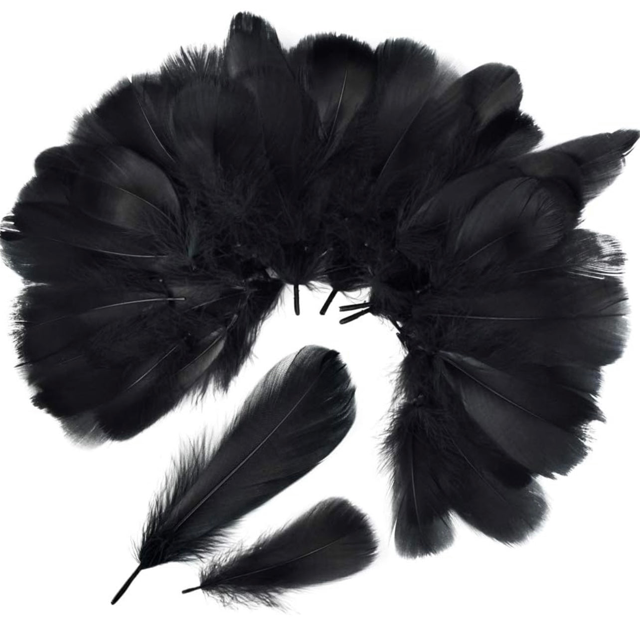 Black Natural Goose Feathers 100 pcs 2-5 inch