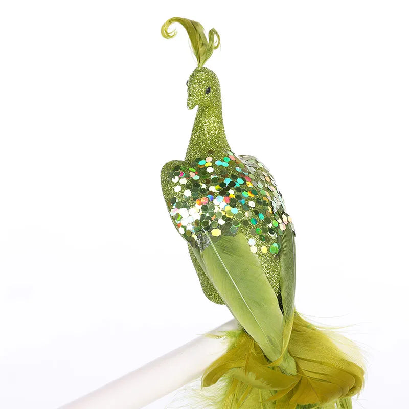 Faux Green Peacock Ornament with Glitter