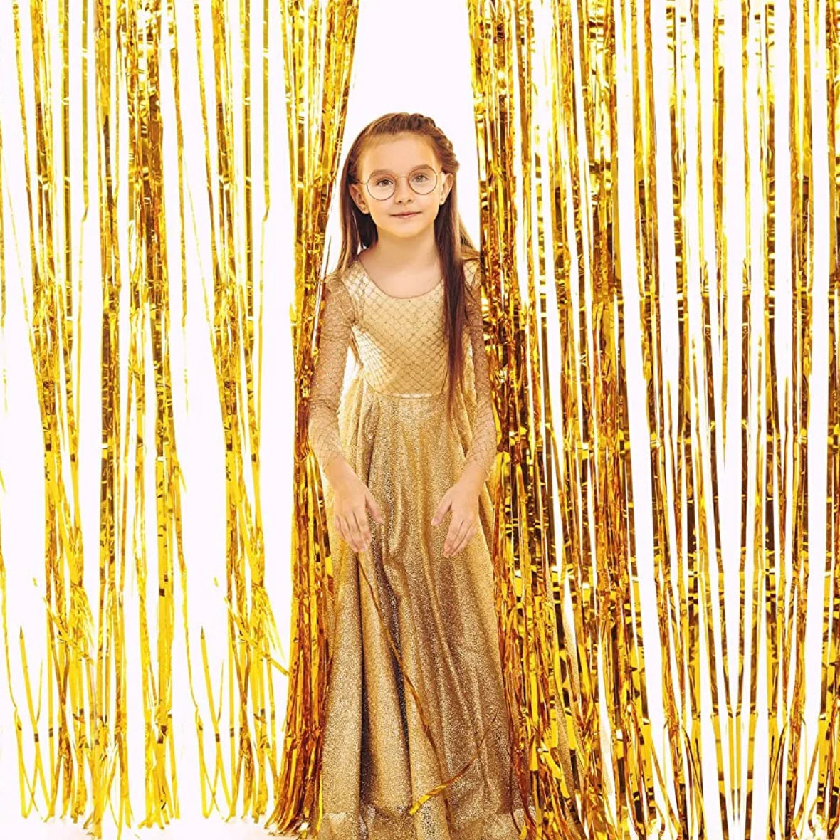 Gold Tinsel Fringe Curtain Backdrop (1x2m)